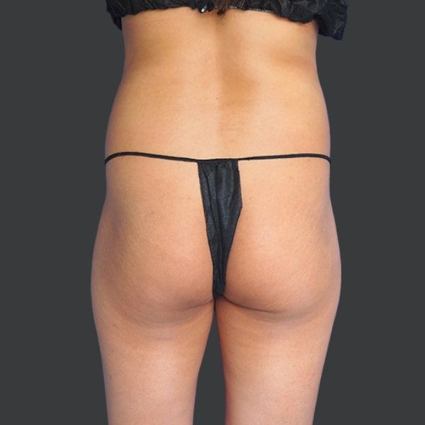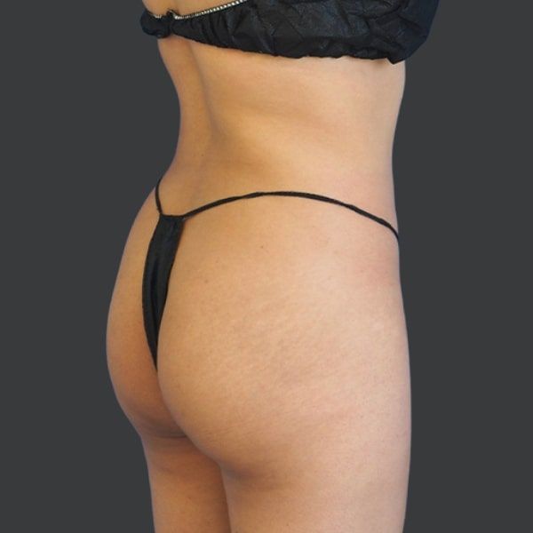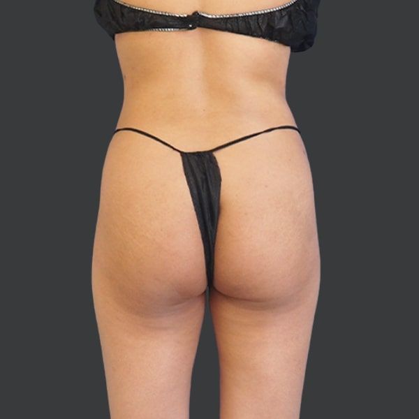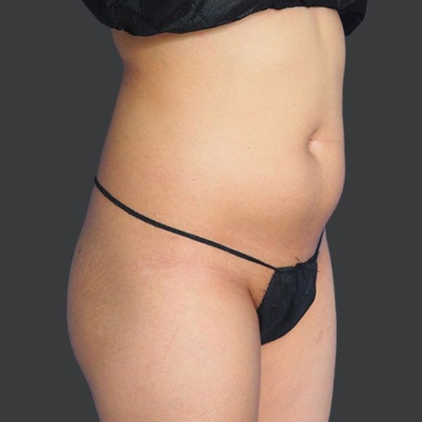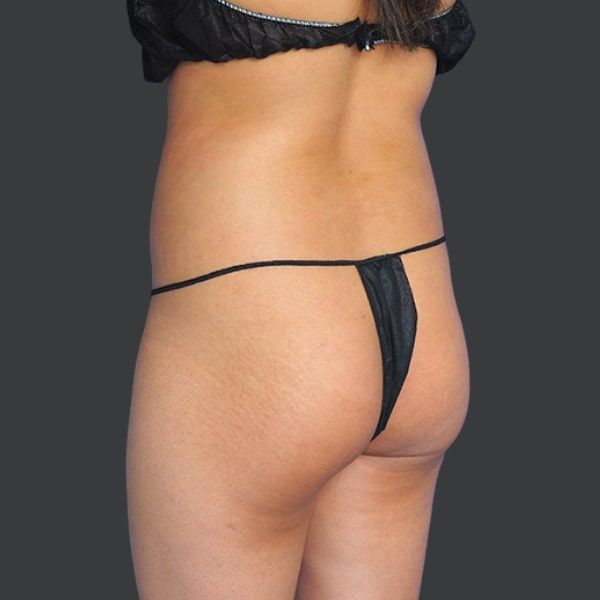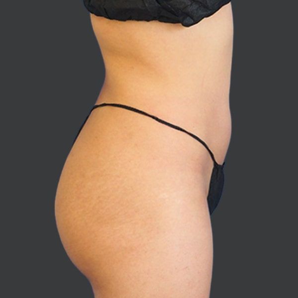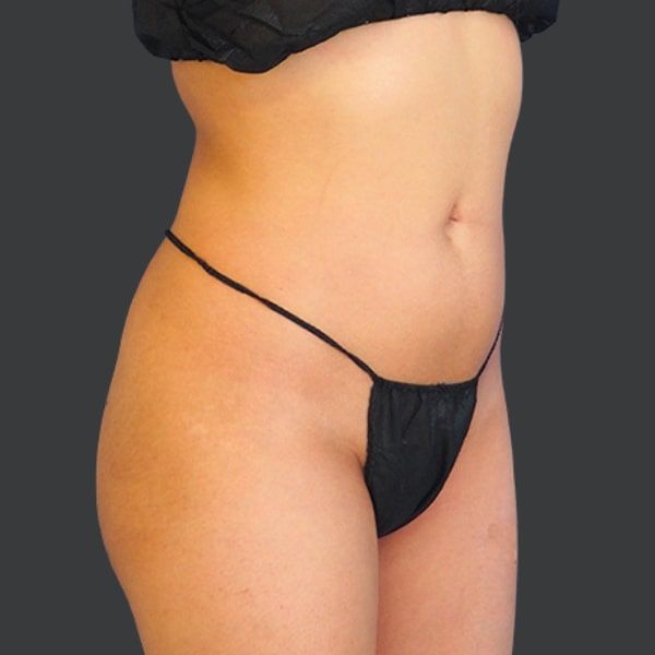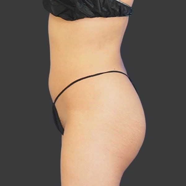 This patient is shown 6 months post-op from Liposuction of the abdomen, flanks, and back, along with Hip Re-Shaping with natural fat transfer.