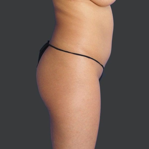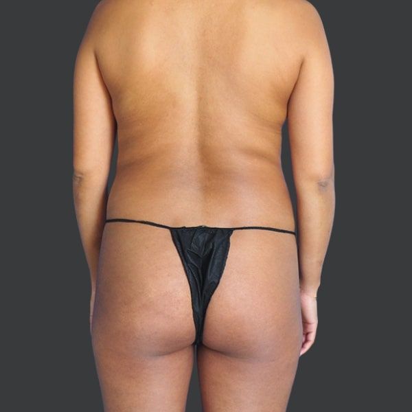 This patient is shown 3 months post-op from Liposuction of the abdomen, flanks, and back, along with a Brazilian Butt Lift.